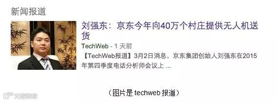 但是,亏损这么多,对于老刘来说,好像一点都不影响他的心情。因为他回答分析师提问的时候,依旧我行我素地吹,保持本色地吹,破纪录地猛吹,因为他说京东要在2016年实现向40万个村庄提供无人机送货!
