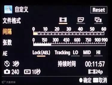 12、点击确定进入自定义模式选项,此刻默认时间间隔为一秒一张,共计拍摄240张,在此模式下我们可以随意调节拍摄间隔时间和拍摄张数
