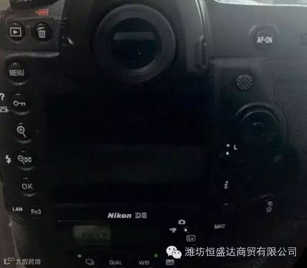 从曝光的谍照来看,除了明显的D5的字样以外,与目前的D4S相比,D5机身右侧顶部改为了ISO快捷按键,而之前在D4S上这部分为菜单按钮。转到机身背面,D5的照片视频转换拨杆、白平衡按钮、回放按钮等都有所变化,此外还新增了第三个Fn自定义按钮。