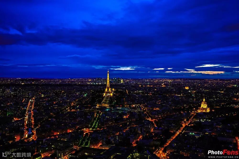 当太阳完全沉下地平线后蓝夜效果的巴黎天际线——埃菲尔铁塔,A7RII+FE 16-35mm F/4拍摄