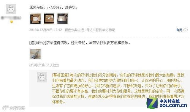 上面我们已经提到,如果这家店铺都是不痛不痒的谄媚式评论,鲜有追加评论,那就可以毫不犹豫的Pass掉了,如果说普通好评是真评的概率是80%,那有追加评价的概率起码是99%。尤其是像笔记本电脑这类需要时间来检验的周期性产品,比如你买件衣服或者买双鞋,从拿到商品的第一时间就能判断出其到底如何——是不是假货、舒服程度如何与描述的图片是否一致,因为这仅仅需要你的感觉和视觉,而这类型产品自然不具有延伸性评论的价值。