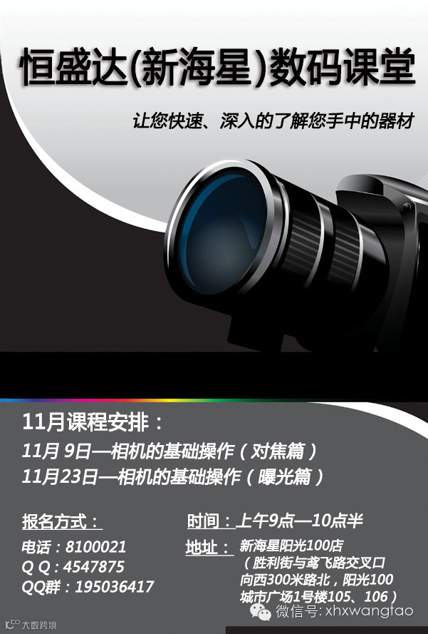 导读:11月23号新海星数码课堂记得参加!报名时请留下您的姓名电话,方便我们做好登记,谢谢~!----------