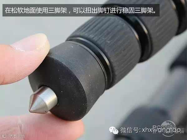 而若是在松软地面使用的话,可以将三脚架脚部的固定钉伸出,插入地面进行固定,提高三脚架的稳定性。