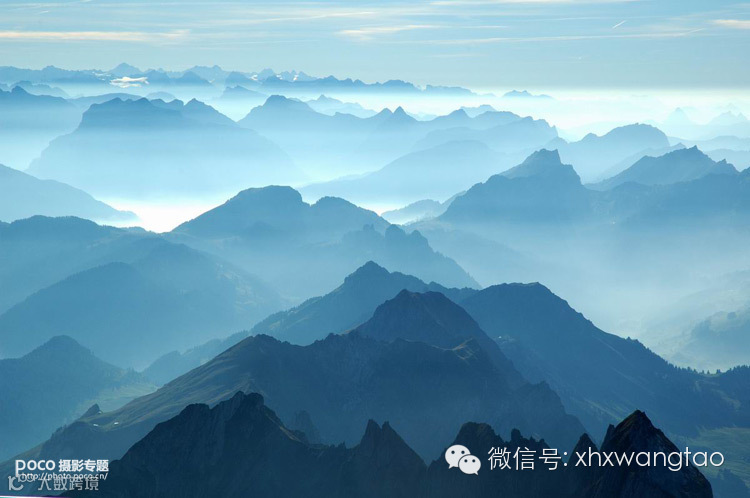 空中透视(也被称为大气的角度)主要多见于风光摄影,特别是在云雾缭绕,朦朦胧胧的场景。强调对象的形状和形式,同时增加了场景拍照的深度感。它是由于大气及空气介质使人们看到近处的景物比远处的景物浓重、色彩饱满、清晰度高等的视觉现象。
