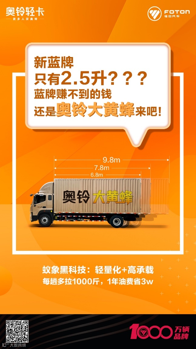 “买黄牌首选奥铃大黄蜂。”这款黄牌中卡界的畅销单品,你种草了吗?