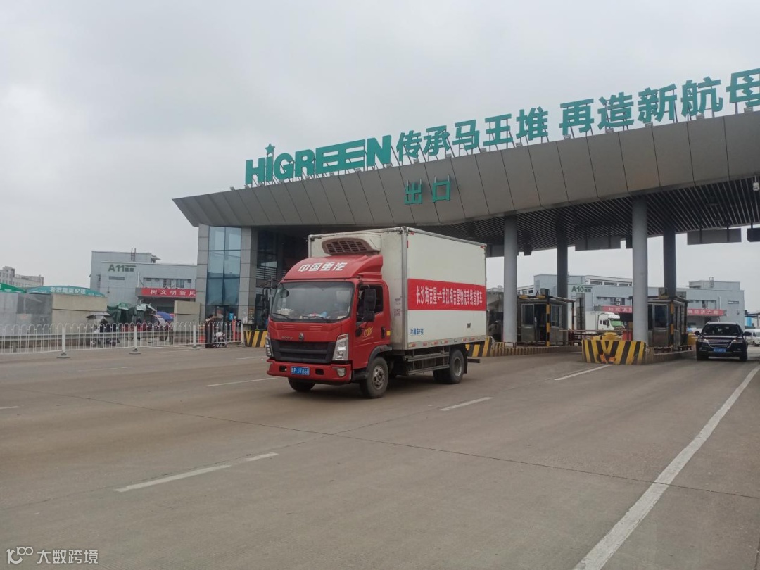 冷链车驶出长沙黄兴海吉星国际农产品物流园