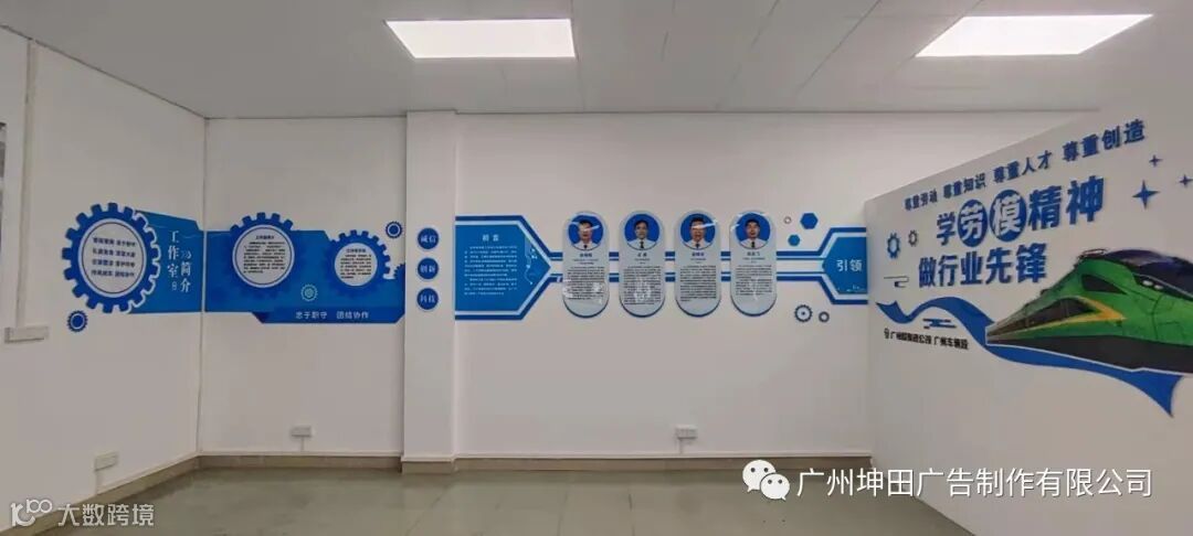 本次劳模创新工作室的项目中,设计师在墙面营造出凹凸感,然后镶嵌灯箱和灯带提高了整体档次,凸显高端科技感。