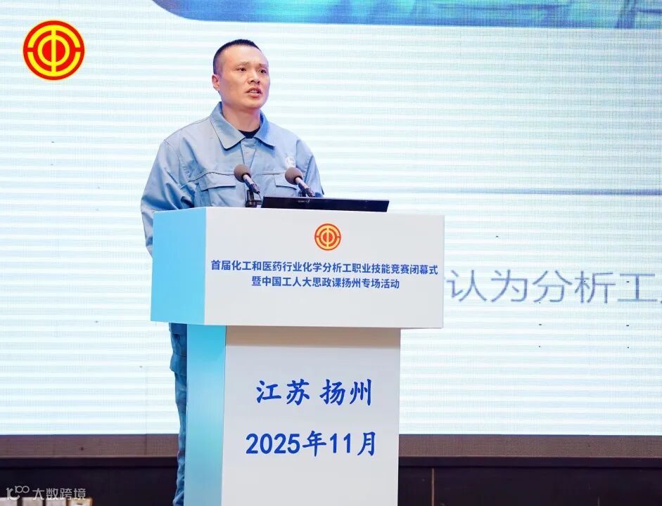 竞赛闭幕式上还举办了“中国工人大思政课”扬州专场活动,省五一劳动奖章获得者、仪征化纤分析检验中心陈云华登台讲述了在一线攻坚克难与技术成长的故事。
