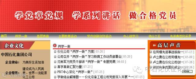 ▲公司党委建立了“两学一做”学习教育网页,为指导学习教育、沟通交流搭建平台