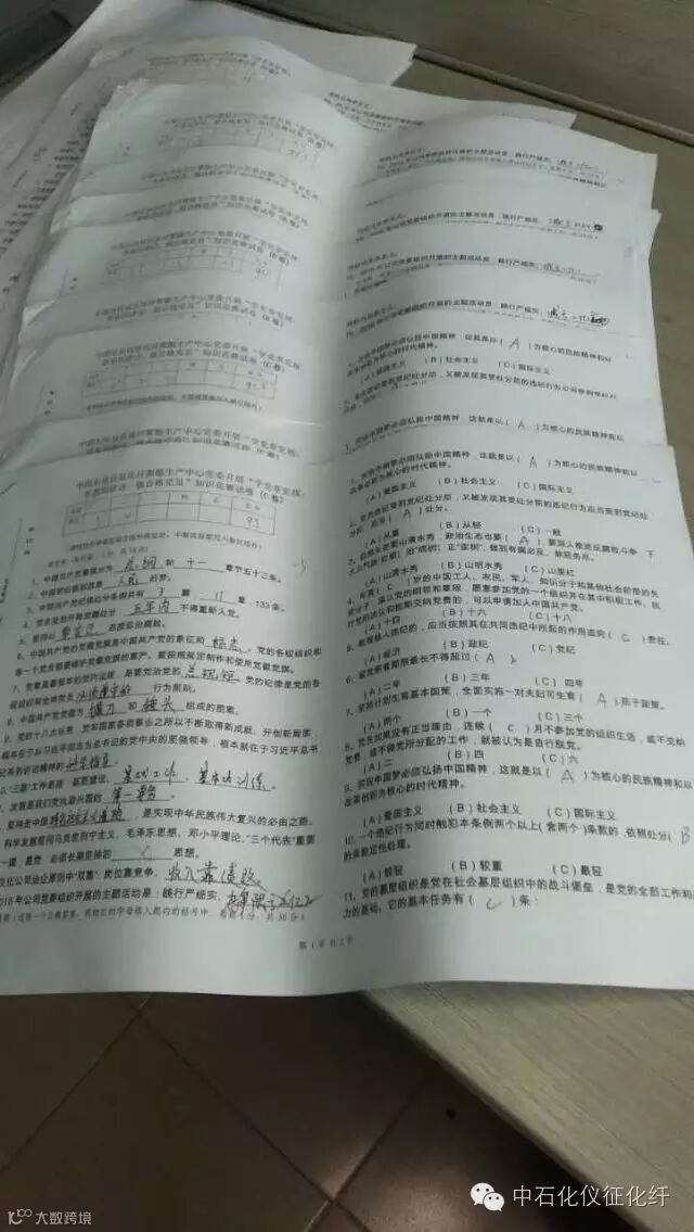 ▲聚酯中心编写了150道“两学一做”学习题目,组织全体党员考试