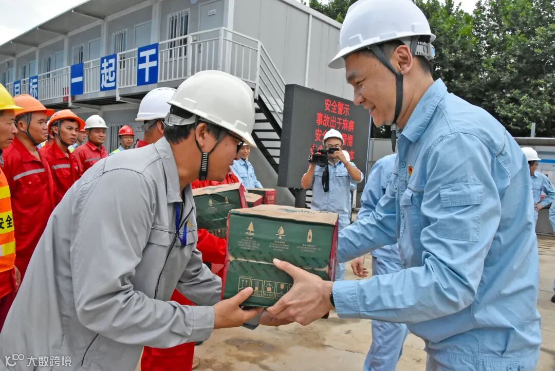 刘楠说:“天气炎热,我代表公司党委和工会来看望大家,也借着慰问的机会,向你们道一声感谢!”刘楠叮嘱大家一定要注意现场安全,每个人都是自己身体健康的第一责任人。项目现场要做好防暑降温各项措施,避开高温时段作业,保质保量安全高效把项目建设好。