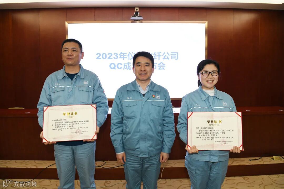 公司总经理、党委副书记毛绪国,公司副总经理杨勇出席会议,并为获得2022年中国石化QC成果二等奖的合纤一部大西洋QC小组及6个获得2023年公司QC小组成果奖的QC小组颁奖。