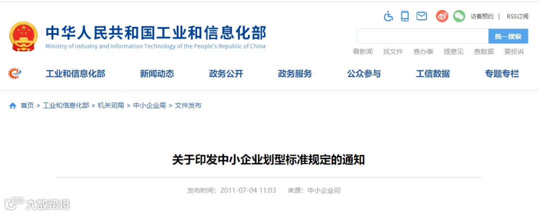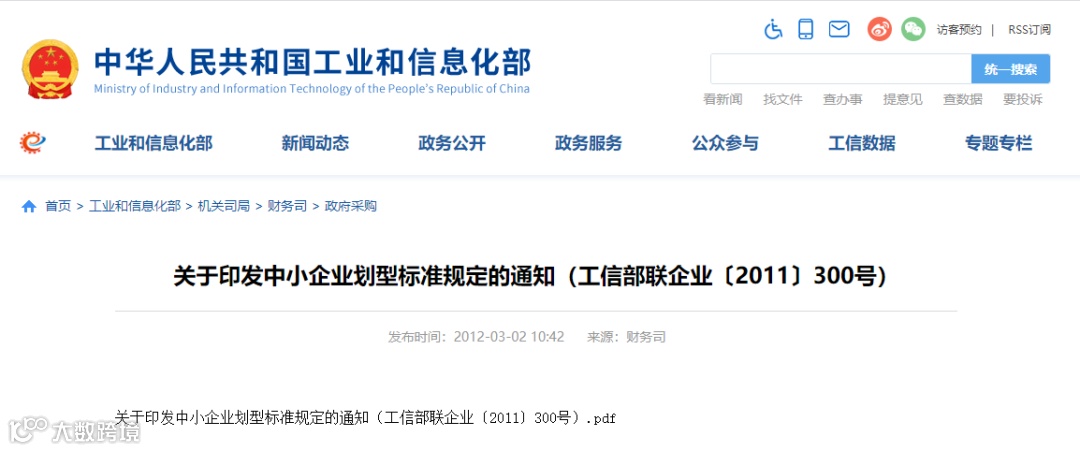 工信部联企业[2011]300号文件中第二条规定:中小企业划分为中型、小型、微型三种类型,具体标准根据企业从业人员、营业收入、资产总额等指标,结合行业特点制定。