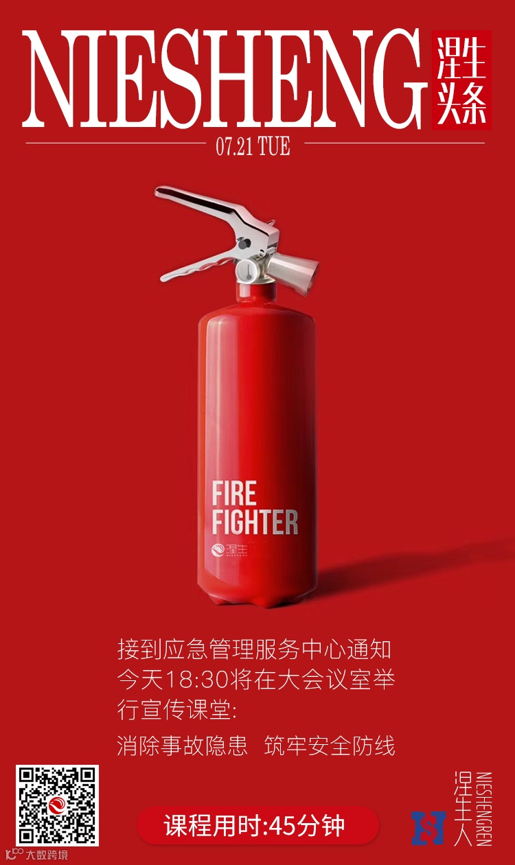 今晚18:30大会议室开消防宣传课: