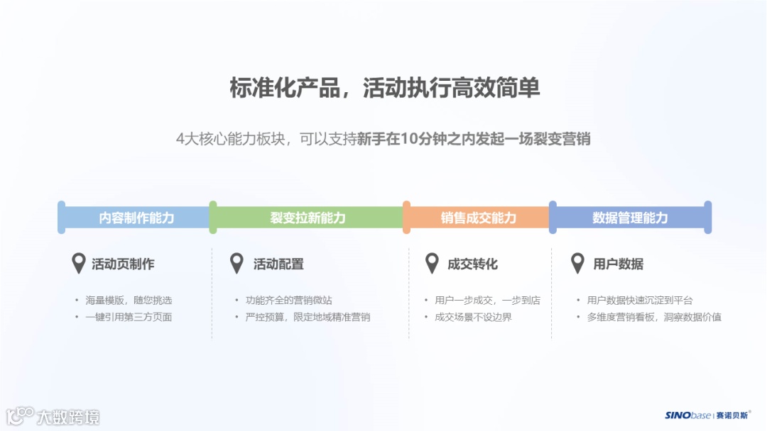 除了裂变营销玩法外,选择靠谱的裂变工具,也是活动成功的重要保障。赛诺贝斯基于多年营销服务经验,在超过1000场一线裂变营销活动中对众多的裂变工具进行实际效果验证,推出品牌裂变营销利器【裂变通】,可完成分销裂变、卡券裂变、拼团裂变、抽奖裂变等多种裂变营销,品牌一键设置即可开启,成本低、效果好。
