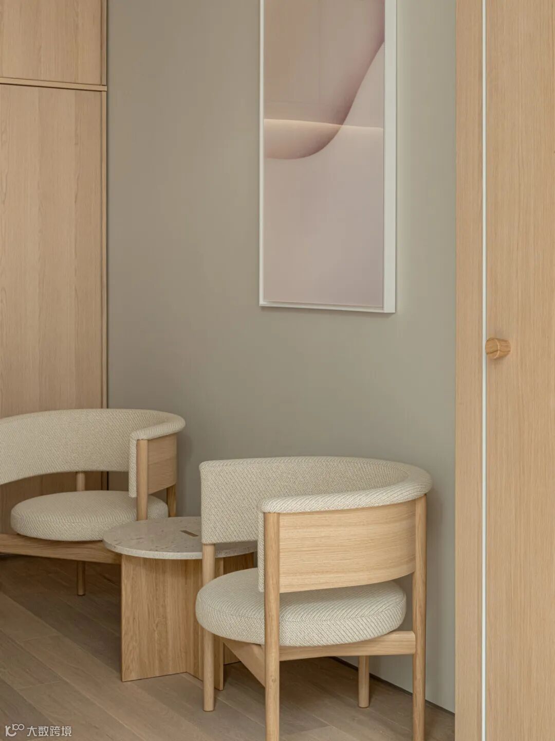 根据平面布局,需要构建一个紧凑而实用的空间,电梯厅用作休息室,走廊穿过治疗室的中间,两侧都有私密空间。内饰的设计最大限度地提高了材料的品质感,把手、家具内饰的颜色以及其他与皮肤接触的区域都经过了特别精心的挑选。于是,一种区别于现有诊所的独特舒适感被创造出来,成为一个让人们想再次光顾的空间。这符合“医美正循环”的理念,也是诊所名称的由来。