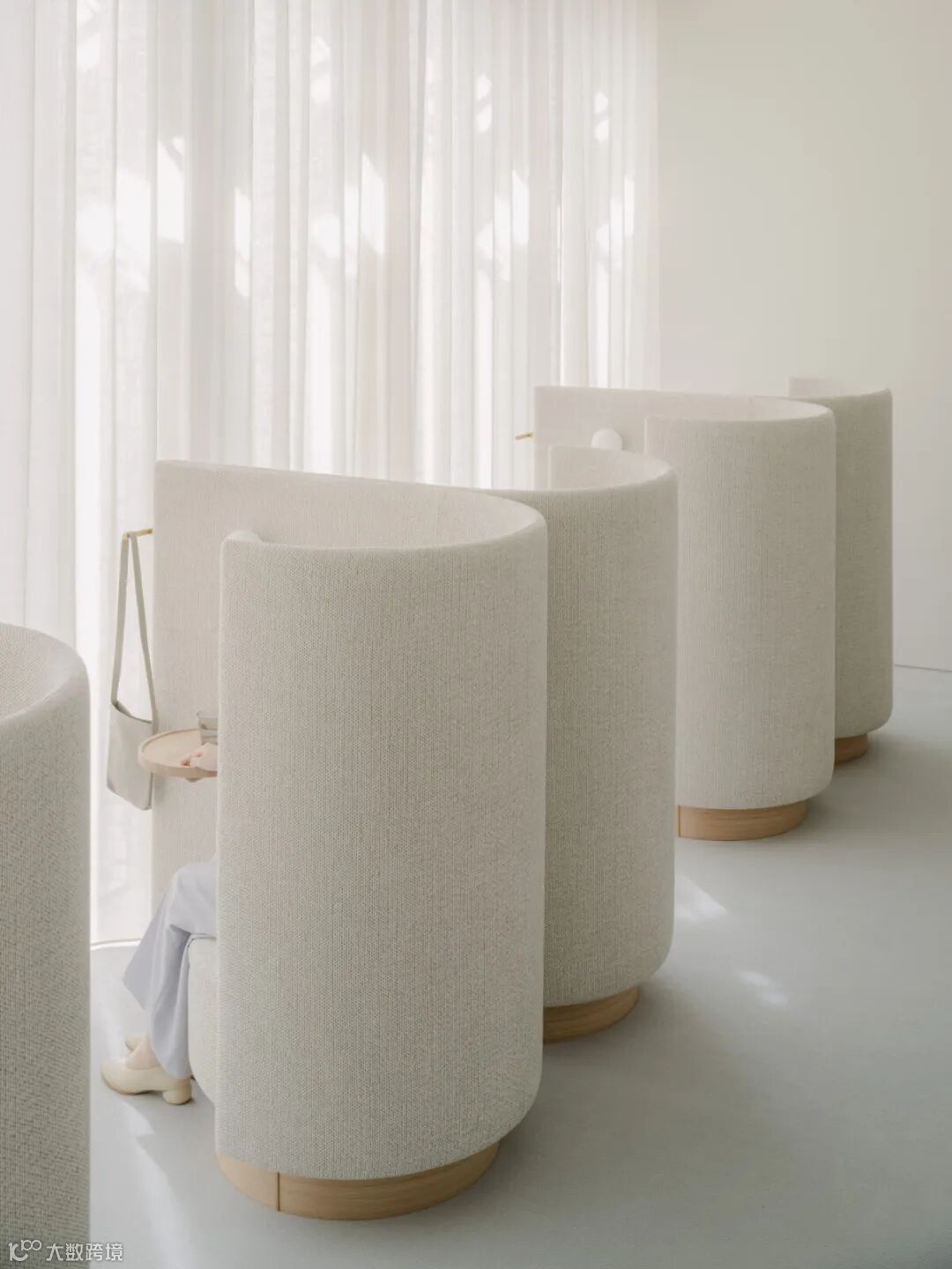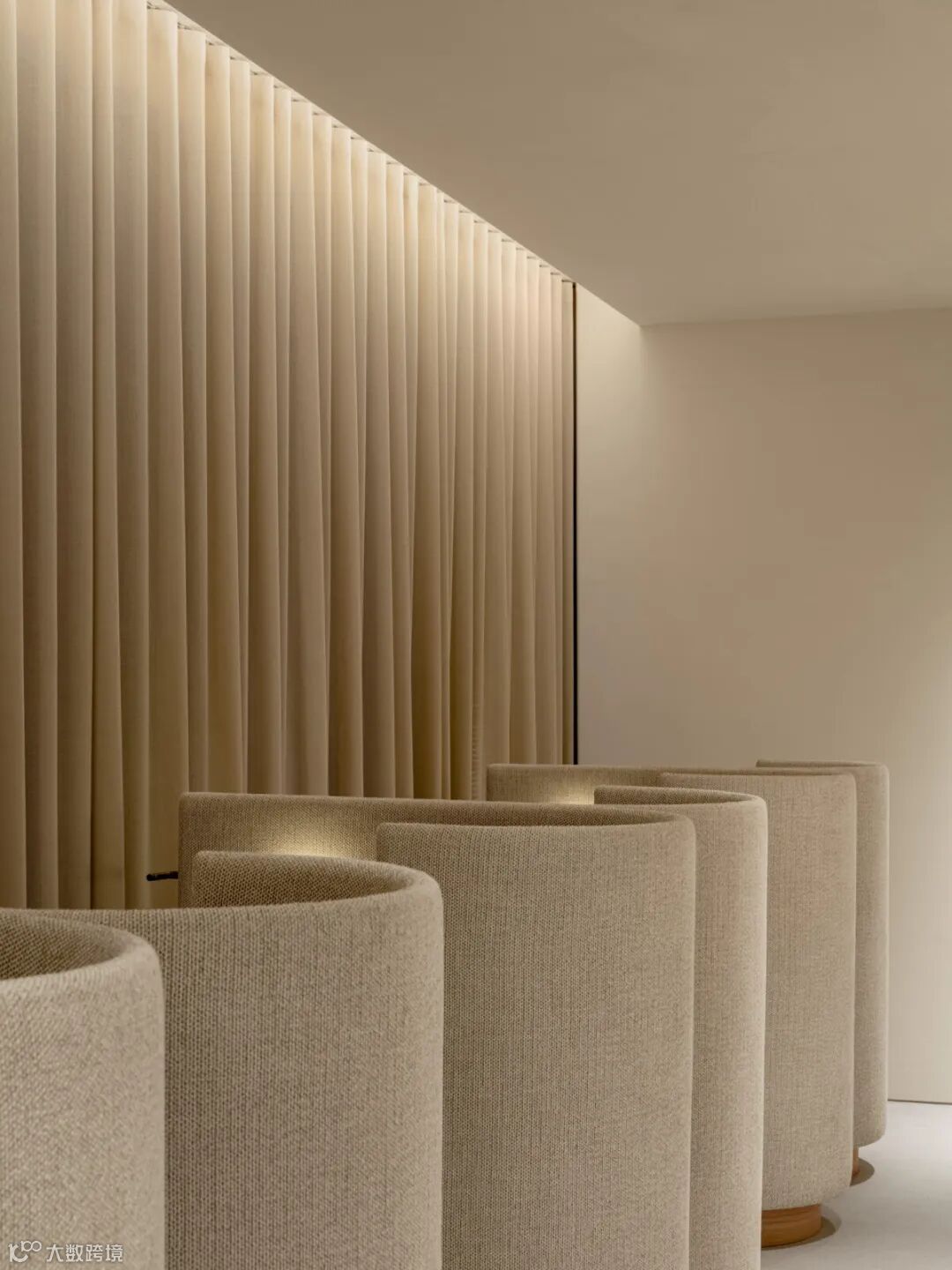 休息室被定义为诊所的门面,顾客首先进入这里。透过窗户进来的光线被窗帘软化了,而墙上的灰泥则用自然光投射,以强调纹理。靠窗排列的休息室沙发是与Karimoku Furniture合作制作的。入口休息室的休息室沙发旨在轻轻地包裹住顾客,让他们在治疗后放松,而不会感到显眼,并在空间中创造出愉快的节奏。空间的角落和家具的边缘被有意地磨圆,以创造一个有凝聚力和柔软的空间,为整个空间奠定基调。这有助于诊所的整体热情好客,这对诊所来说是出乎意料的,我们感到自豪的是,这个空间对我们的客户来说是独一无二的。