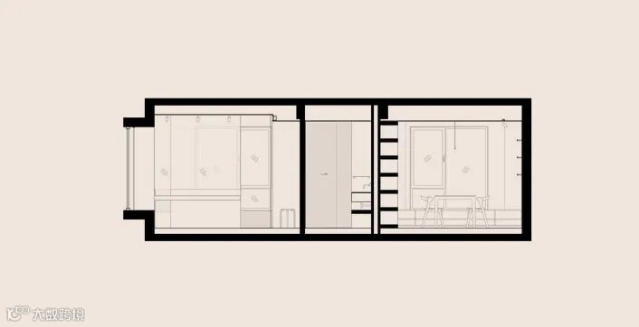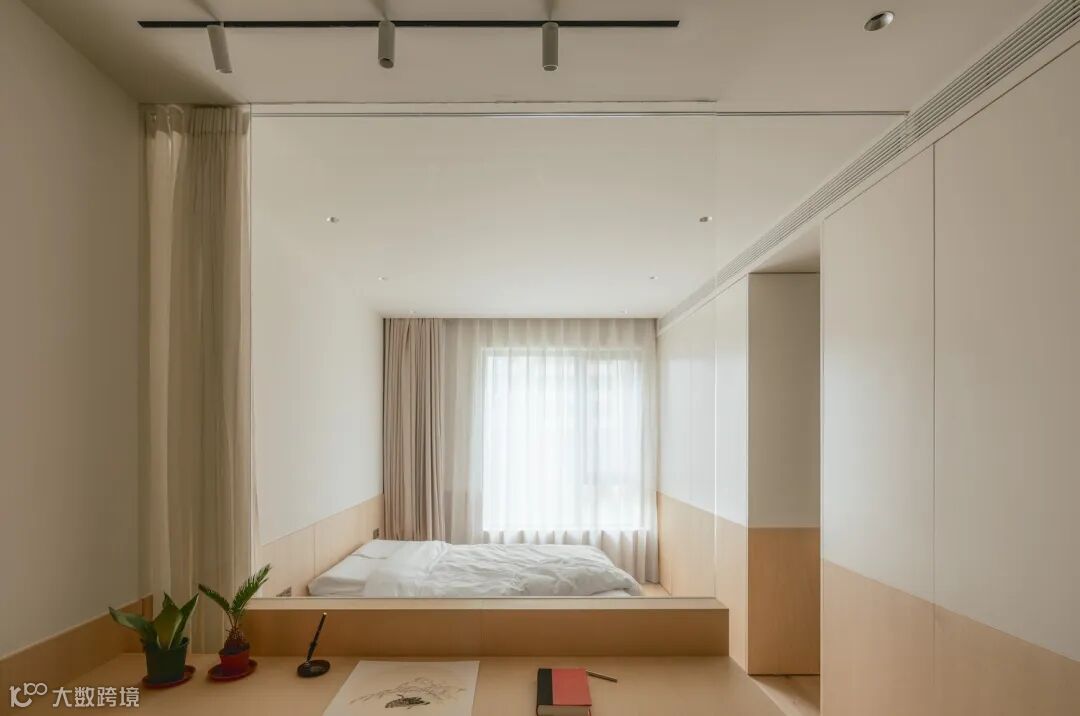 摒除过多复杂的色彩,用高级灰为睡卧区域“降燥降光”,实现了居住者对宁静舒适的向往,整个空间精致却不张扬,简约而不简单。辅以垂吊的灯为空间镀上了一层氛围光,空间温度攀升,令人在静谧温馨中安然入睡。