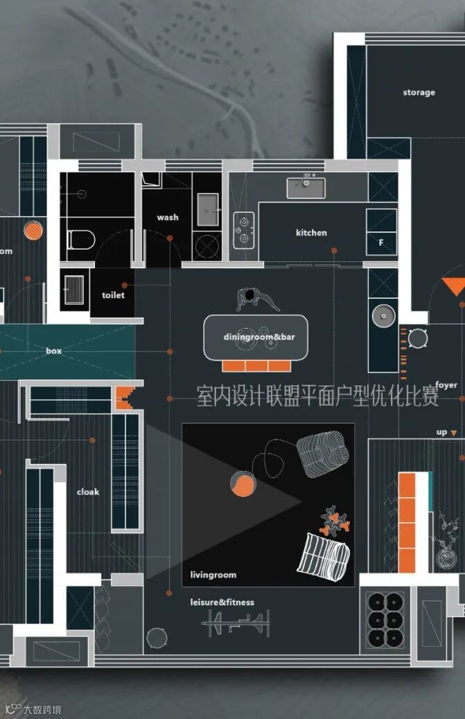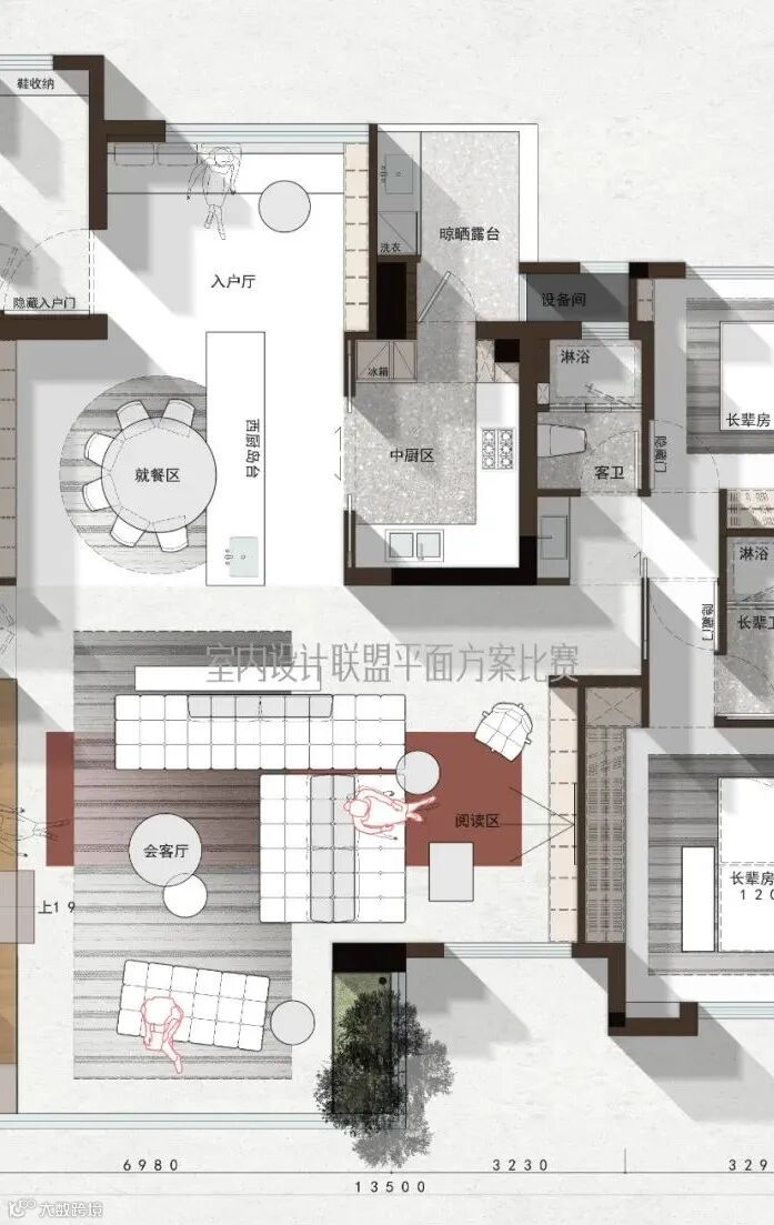 1.本期参赛户型为两套挑高公寓打通,入户门可根据设计选择,无天然气。