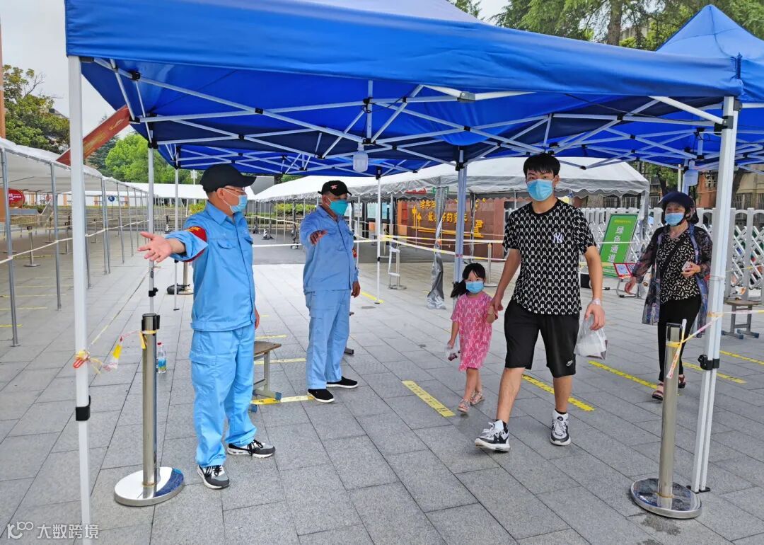 志愿者们从早上5:00到下午3:30,在生活区六个核酸检测采样点,认真维护现场秩序,查验受检人员“两码”,测量体温,并引导儿童及老年人前往绿色通道有序排队,热情为大家服务。