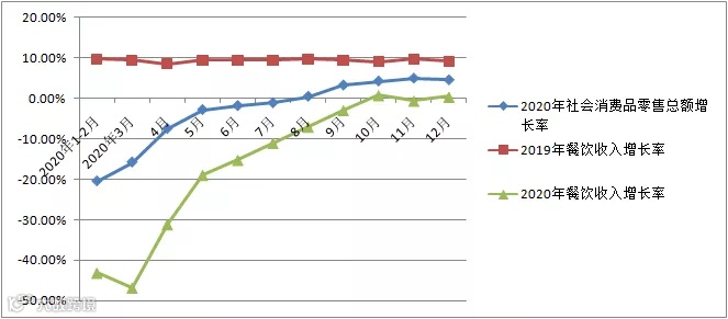 据国家统计局发布数据显示,2020年12月份,餐饮收入4950亿元,增长0.4%,11月份为下降0.6%。2020全年,餐饮收入39527亿元,下降16.6%;限额以上餐饮收入8232亿元,同比下降14.0%。