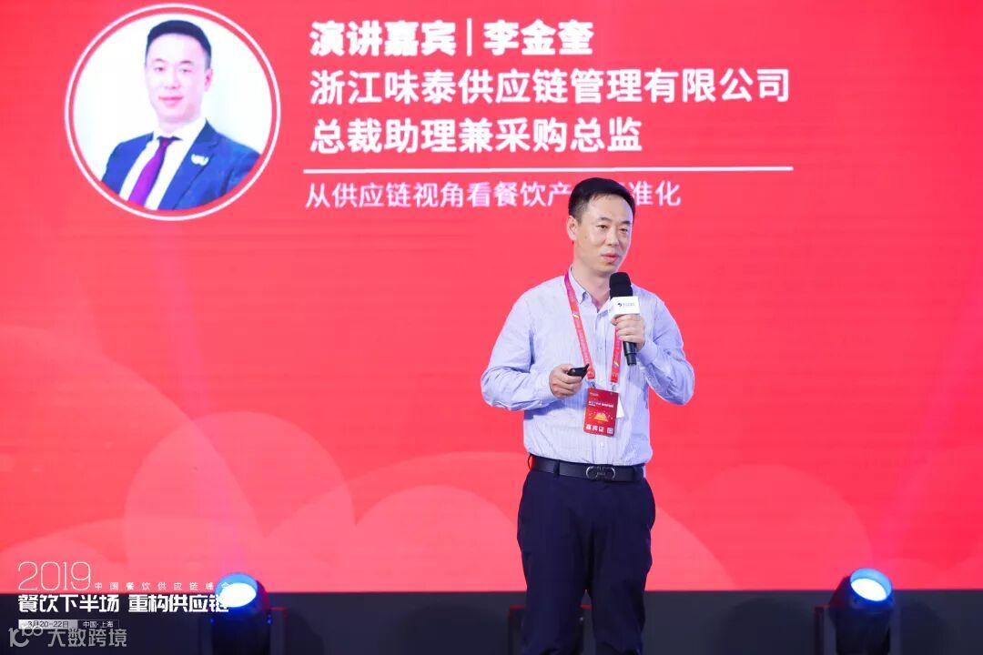 在峰会中,味泰总裁助理兼采购总监李金奎先生受邀请上台就“从供应链视角看餐饮产业标准化”,作了主题演讲。