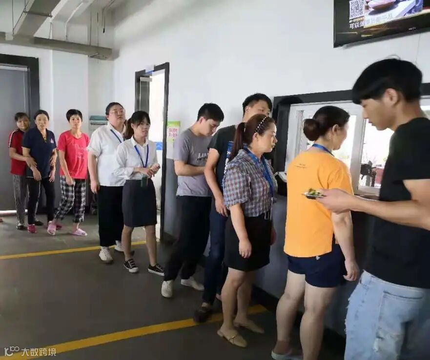 员工排队取餐中