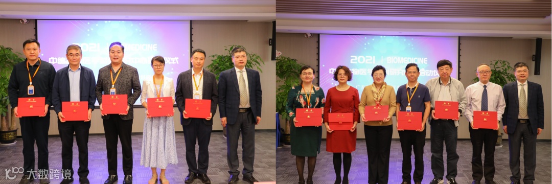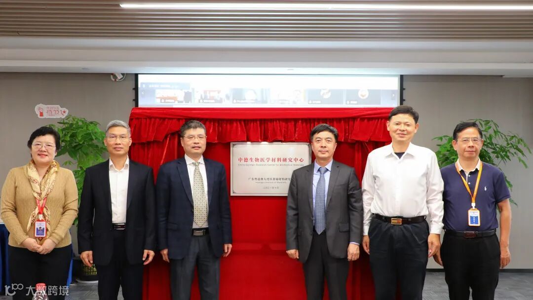 杨小牛、孙学伟、陈伟权、程志鹏、尹良红、戴勇联袂上台为中德生物医学材料研究中心揭牌,Prof.Dr.B.Krämer等德国专家线上见证这一时刻。