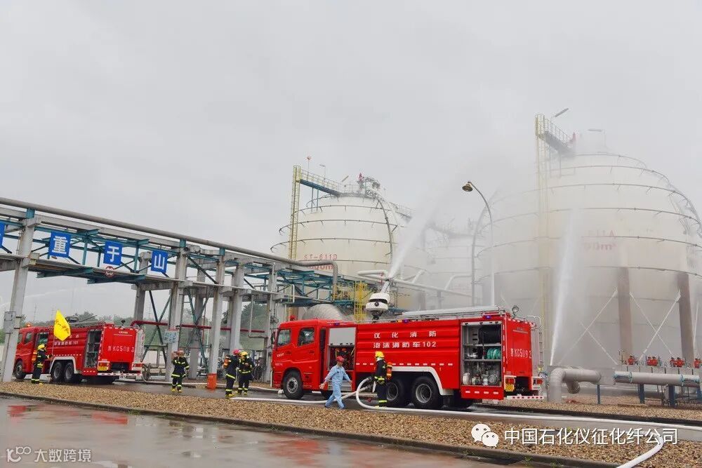 市应急管理局在中国石化仪征化纤公司BDO部球罐区冒雨举行危险化学品重大危险源应急救援演练。公司副总经理刘建军现场指挥此次演练,扬州市应急管理局总工程师张景臣等专家现场观看了演练。