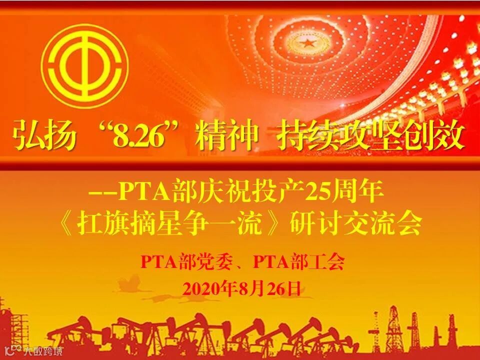 纪念“8•26”投产25周年“四个一”系列活动主要是:组织一次传承“8.26”精神的班组学习活动、进行一次《扛旗摘星创一流》研讨交流、提一条“持续攻坚创效”合理化建议、开展一次“伴随8.26精神成长,我为PTA部持续攻坚创效能做些什么?”主题征文。