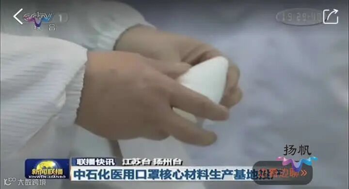 3月29日19:00,中央电视台《新闻联播》《东方时空》节目分别以《中石化医用口罩核心材料生产基地投产》《江苏扬州:全国又一大型医用口罩材料基地投产》为题,报道了中石化仪征化纤首条熔喷布生产线建成投产,见证了央企的“速度与激情”。据了解,该视频由扬州广电全媒体新闻中心向央视提供。