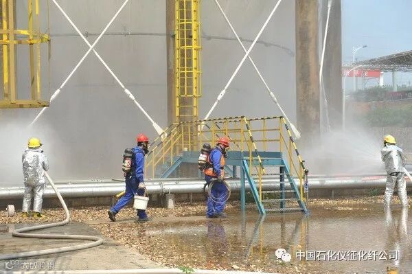 上午9点32分,公司安全环保处根据演练预案下达指令:BDO部球罐区值班室一名职工发现ST611A储罐底部正丁烷泄漏着火,立刻向中控室报告火情。随即,应急演练正式展开。