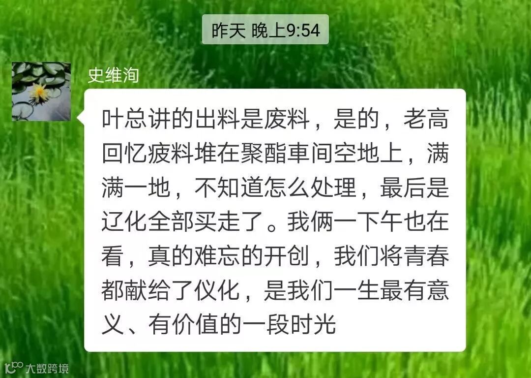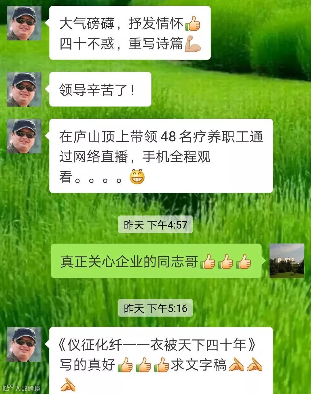 “40年来,仪征化纤发展化纤产业、解决了老百姓穿衣难的问题,实现了“衣被天下”的梦想,同时实现10万吨聚酯工艺技术国产化,推动了民族化纤工业跨越式发展,交出了一份精彩的答卷。”