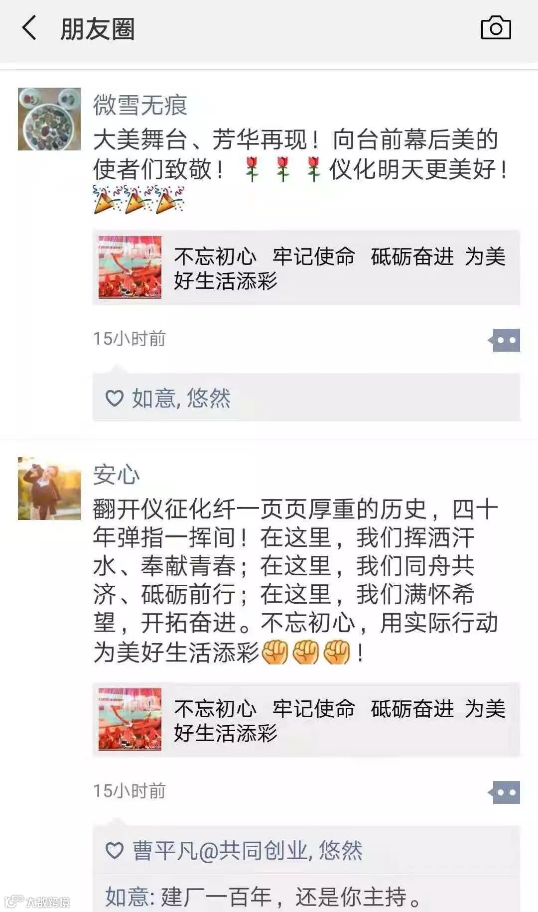 “最美的年龄段都是在仪化度过,感恩仪化”