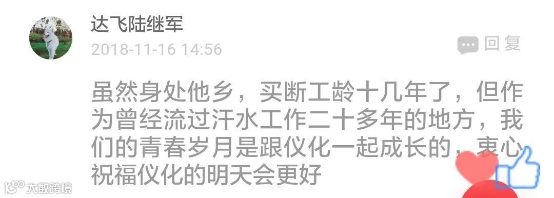 “观看了这个演出之后,我作为一名仪化人,我首先感到骄傲,也很感动。大气、很精彩的演出,再一次展现了我们仪化职工的风采。也同时展现了仪化辉煌的历程。感谢公司给我们留下了美好的回忆。”