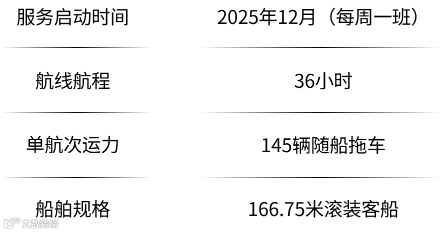 此项服务支持非集装箱化的整车拖车运输,并允许驾驶员随船同行,为两地间货物往来提供了安全、直接的门到门物流解决方案。这一海上通道不仅显著提升了运输的稳定性并精简了跨境流程,还能借助现有的陆路网络,将货物进一步转运至周边国家。