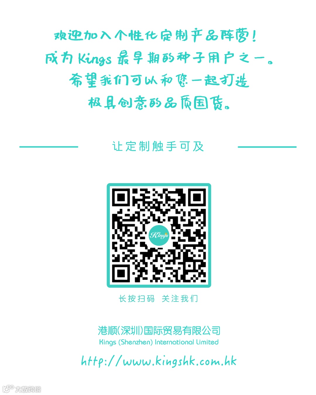 Kings专注为企业客户文化塑造和礼品需求的传递,助力客户需求分析,以专业的创意设计队伍提供概念落地、研发设计,数以千计的供应商保障不同类目的生产协调,顶尖物流领航配送,为客户提供全面的市场营销服务与营销物料解决方案,直至得到您满意的答案。