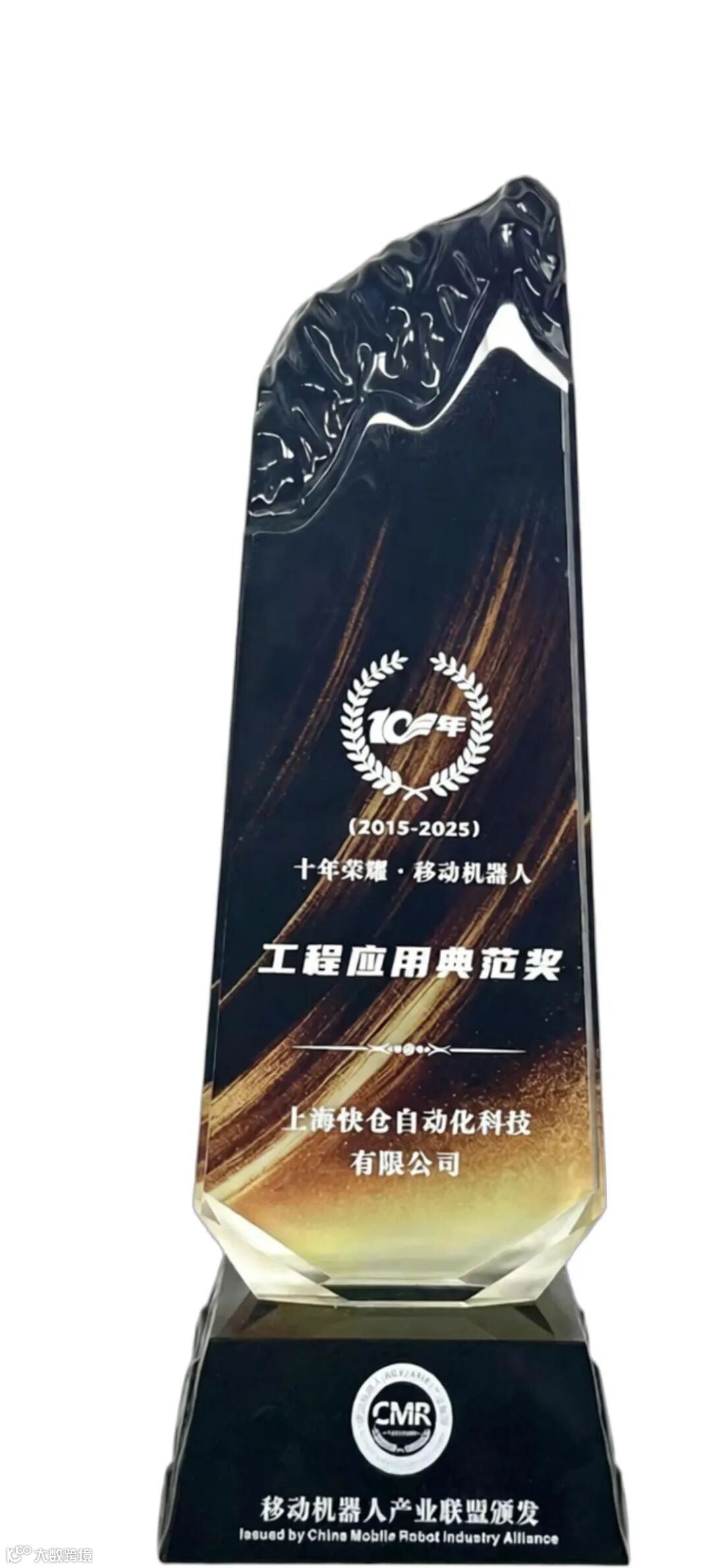 2025年12月3日,荣获移动机器人产业联盟颁发的十年荣誉·移动机器人「工程应用典范奖」,这是对快仓过去十年大量成功应用案例和卓越工程交付能力的最高致敬。