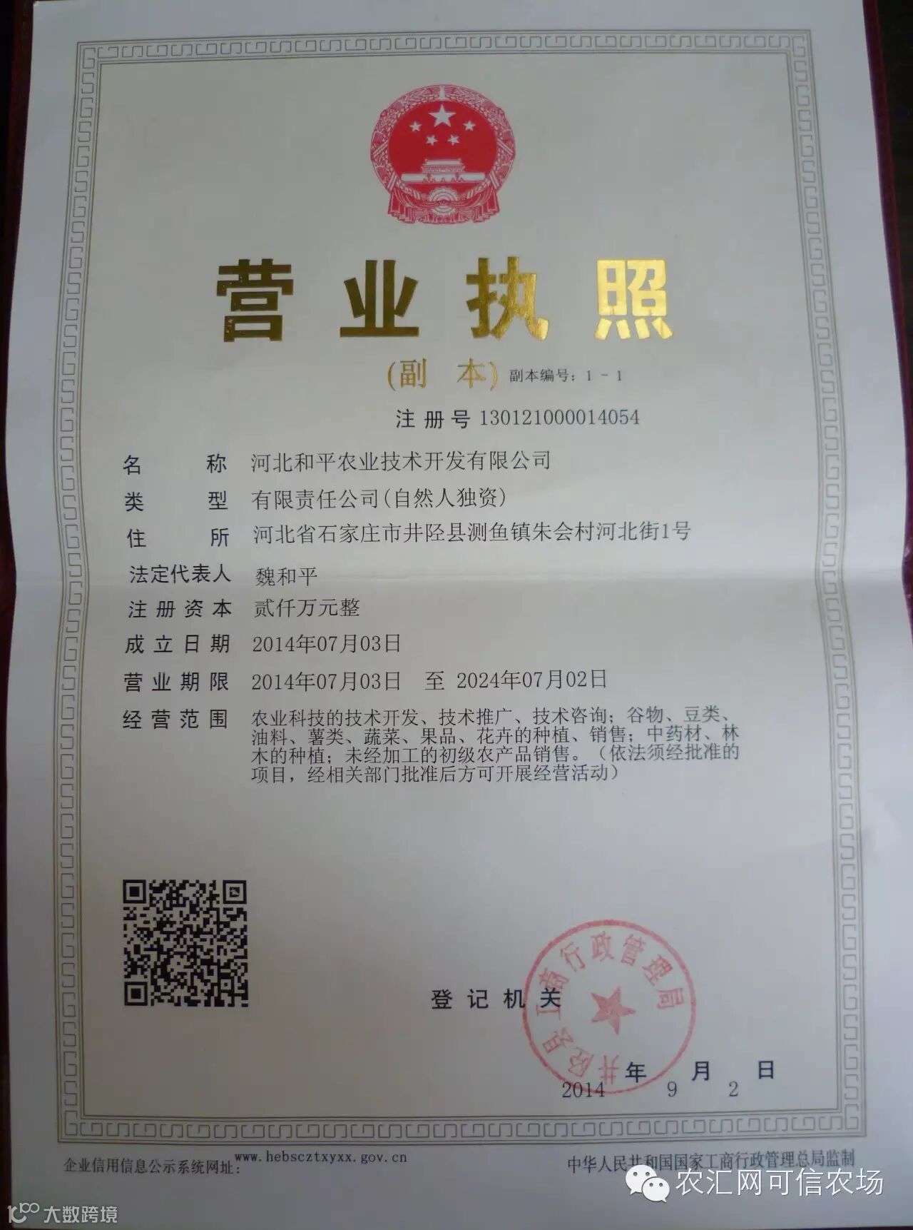 识别二维码即可关注“农汇网可信农场