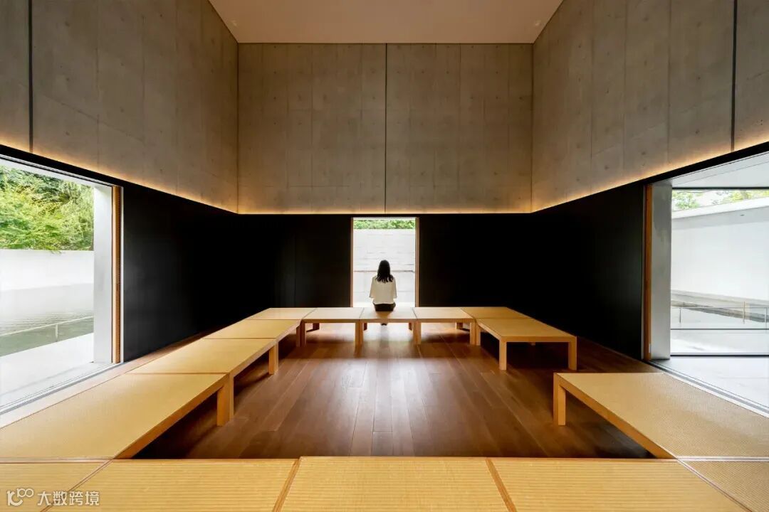 引道空间覆盖着一个深深的花园,以竹子为特色,是保护精神艺术空间免受城市声波影响的装置。