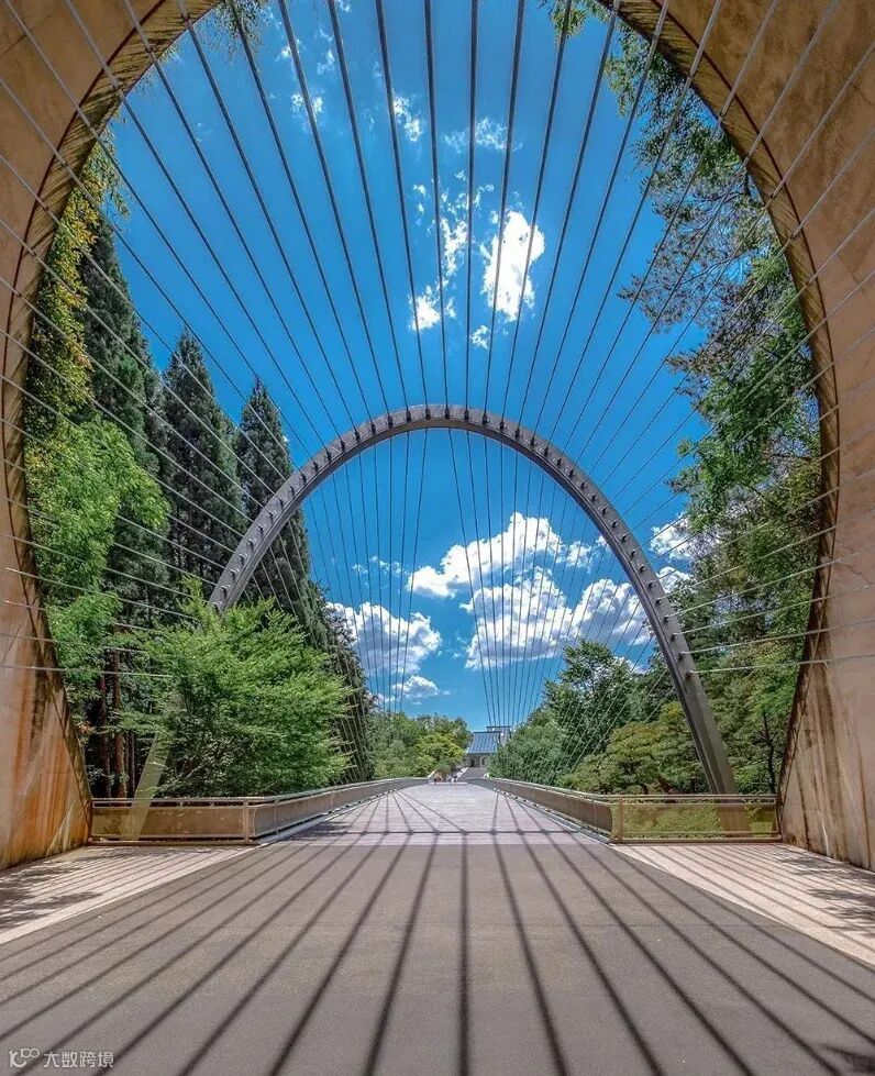 美秀美术馆隐于信乐地区景色秀美的群山之间,这是贝聿铭最肆意洒脱的作品。他以《桃花源记》为灵感源泉,于群山中开辟出一条幽长的隧道,穿过隧道抵达洞口,便可见山谷间的吊桥,桥下深谷中流水潺潺,草木葱茏,再继续向前方能到达美术馆入口。