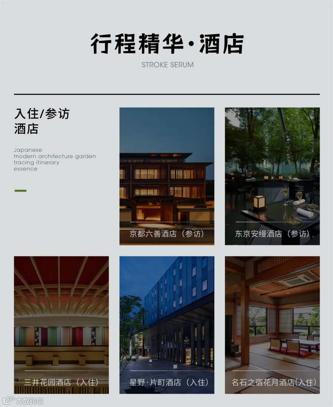 与此我们将入住参访日本多地酒店,感受日式风情与温泉文化,又可领略融合传统与现代元素的高端酒店设计 。