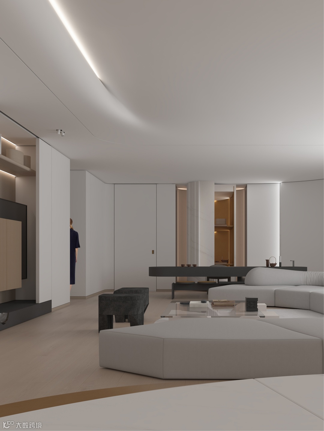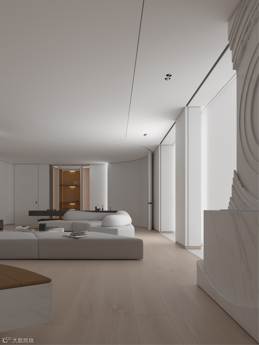 Designer wants to give the free space, the family of feeling, has the poetic and pure white. Through the least color, the material of the element, the most elegant is tonal, give owner quiet, comfortable home.