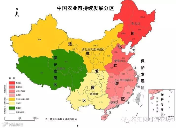 1.《全国农业可持续发展规划(2015-2030年)》5月27日正式发布,这是今后一个时期指导农业可持续发展的纲领性文件。综合考虑各地农业资源承载力、环境容量、生态类型和发展基础等因素,《规划》将全国划分为优化发展区、适度发展区和保护发展区等三大区域,因地制宜、梯次推进、分类施策。优化发展区包括东北区、黄淮海区、长江中下游区和华南区,是我国大宗农产品主产区,农业生产条件好、潜力大,应坚持生产优先、兼顾生态、种养结合,在确保粮食等主要农产品综合生产能力稳步提高的前提下,实现生产稳定发展、资源永续利用、生态环境友好。适度发展区包括西北及长城沿线区和西南区,农业生产特色鲜明,但水土配置错位、资源环境承载力有限,应坚持保护与发展并重,适度挖掘潜力、集约节约、有序利用。保护发展区包括青藏区和海洋渔业区,在生态保护与建设方面具有特殊重要的战略地位,应坚持保护优先、限制开发,适度发展生态产业和特色产业,促进生态系统良性循环。《规划》提出了未来一个时期推进农业可持续发展的五项重点任务:一是优化发展布局,稳定提升农业产能。二是保护耕地资源,促进农田永续利用。三是节约高效用水,保障农业用水安全。四是治理环境污染,改善农业农村环境。五是修复农业生态,提升生态功能。