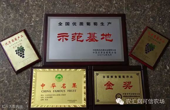 2007年9月8日,由中国林业产业博览会组委会、北京市园林绿化局、中国园艺学会、北京果树学会、中国林业产业协会、中国果品流通协会、北京市果树产业协会在大兴区举办的“2008年北京奥运推荐果品评选”综合组评比中,有机葡萄基地生产的“里扎玛特”、“黑奥林”两个有机品种荣获二等奖;同年有机葡萄基地生产的“红地球”葡萄在新疆吐鲁番召开的全国果品流通协会葡萄分会成立大会上获“中华名果”称号;2009年9月,在甘肃敦煌召开的第十五届全国葡萄学术研讨会上,有机葡萄基地送选的“美人指”、“森田尼无核”(无核白鸡心)、“京香玉”三个葡萄品种,在17个省市选送的159个样品中脱颖而出,分获中国农学会葡萄分会和中国果品流通协会葡萄分会联合颁发的两项金奖、一项银奖。