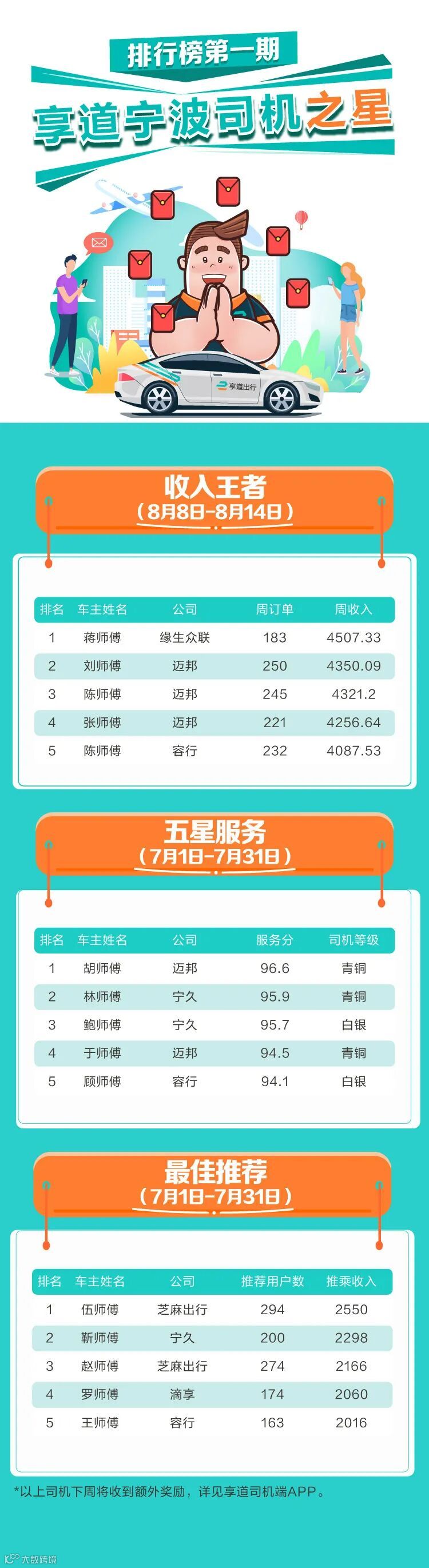 榜上有名 | 冲刺享道宁波司机之星,得200元现金奖励!