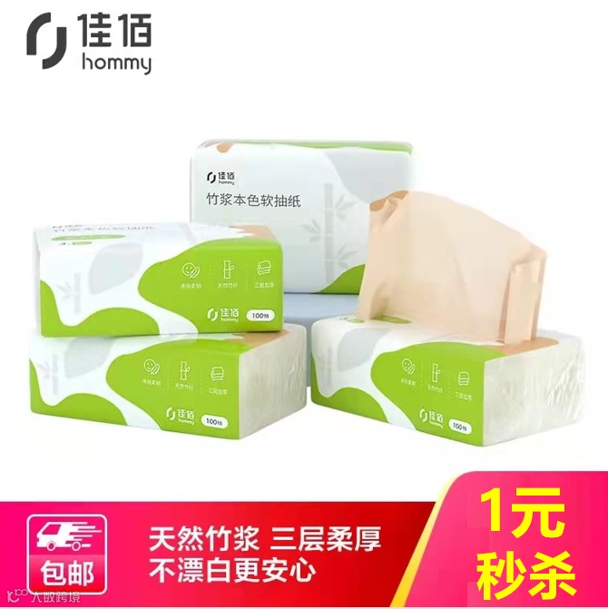 佳佰 竹浆本色抽纸3层100抽*4包