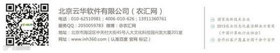 1.云华农汇网(www.inh360.com)是国内领先的农业产业链互联网服务网站,依托自主知识产权的北京云华农汇网“可信农场云平台”,寻找和提升原产地现代农业组织(农民合作社、家庭农场、专业大户以及农业企业等)的互联网应用和现代经营能力,集合资源,搭建连接原产地现代农业组织与农业产业链的平台,致力于打造“数据电子化、业务可记录、质量可追溯、信息可互联”的“透明农业组织”。