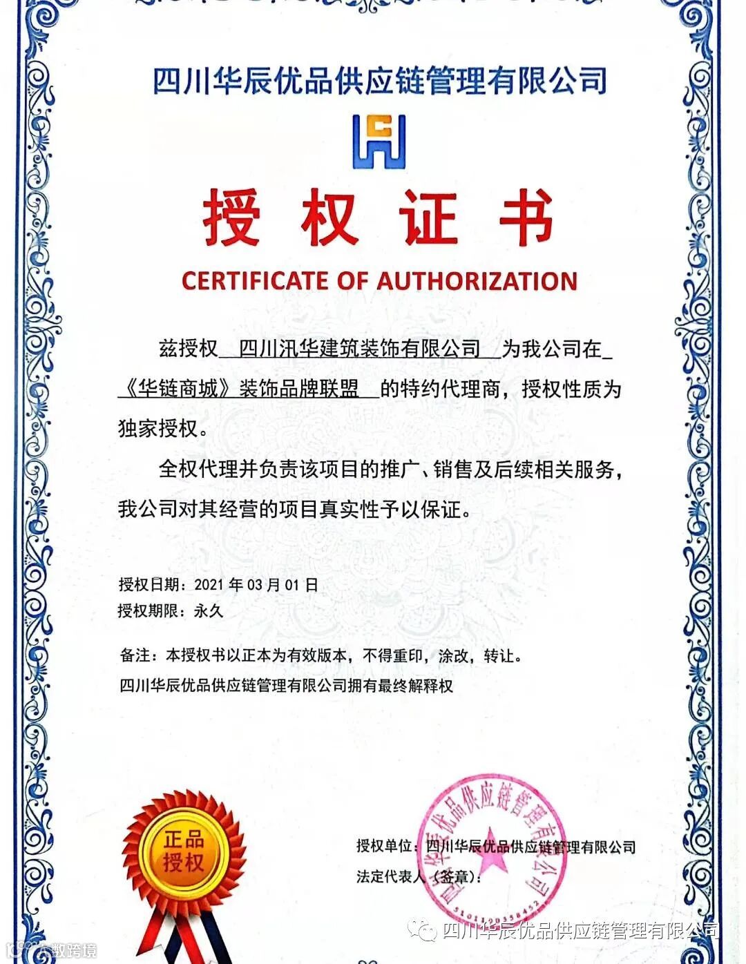 2►四川汛华建筑装饰有限公司与四川金鸿辰装饰有限公司品牌装饰联盟证书