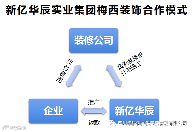 具体合作模式为企业先垫付装修费用,新亿华辰集团分段返款于企业,三年期内,若企业推广商城会员人数达到协议要求,则新亿华辰集团按协议返回所有装修费用于企业。